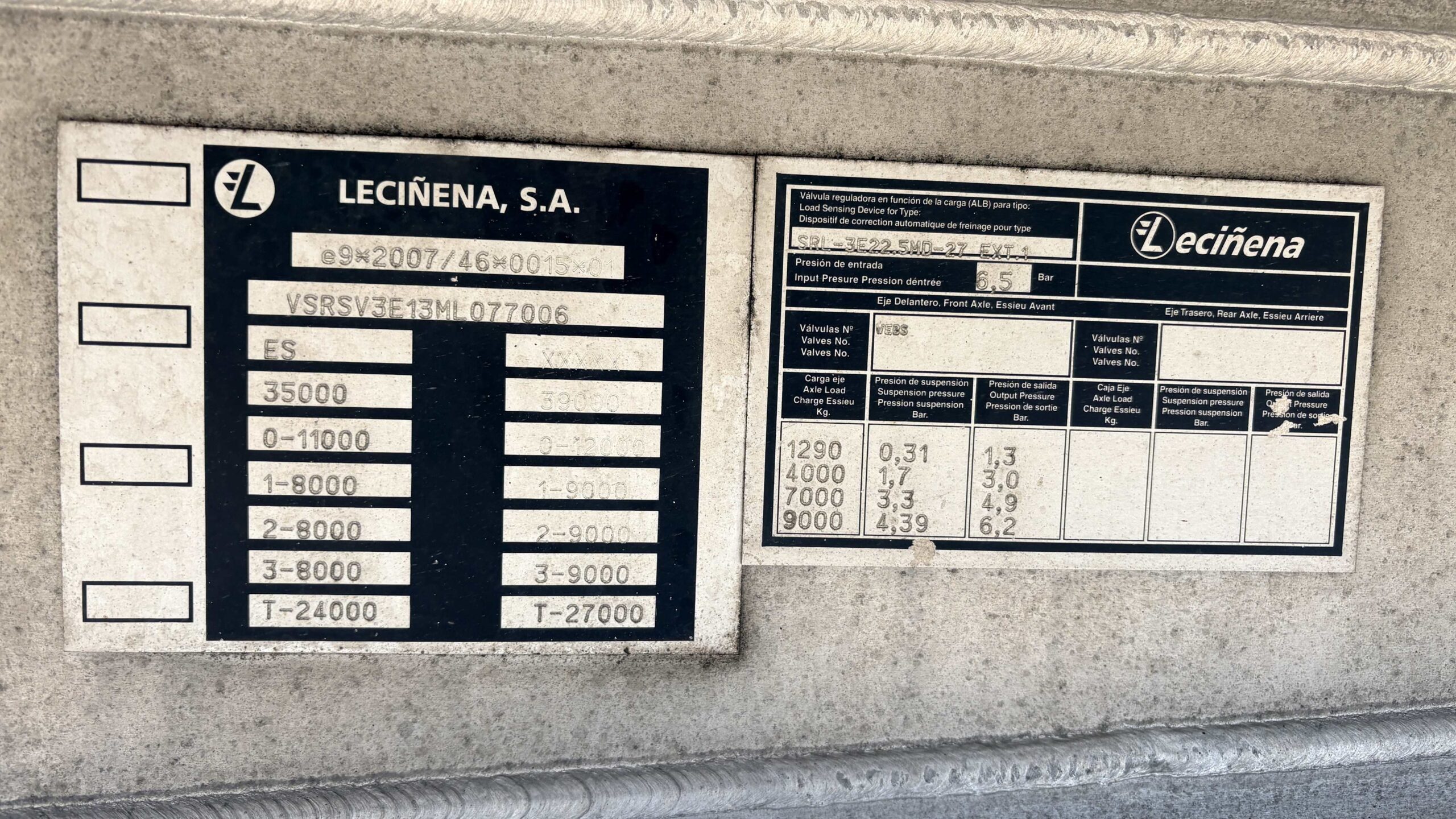 1ª matriculación 01-04-2013, 3 ejes LECIÑENA, Suspensión neumática, Frenos disco, 1er eje elevable, Tara: 6.250 kg, 9 tn ejes, Longitud total: 12,40 mtr, 52 M3, 6 ruedas 385/65R22.5, ITV hasta 18-02-2026, Nº chasis: FSRSV3E13ML077006,